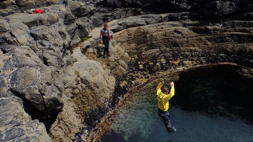 Ireland-2017 -- Quilty - Mutton Island kayaking - Patrick jumping into pool