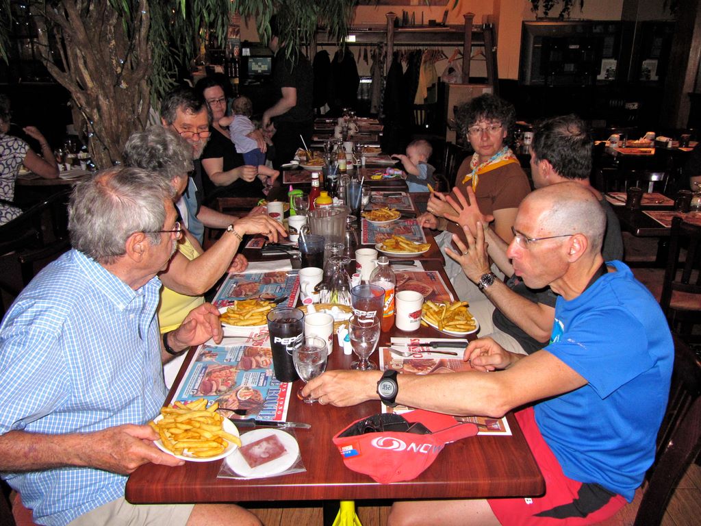 Montreal2010 -- at Chenoy's Deli: left - Dick, Leline, Eric, Lara. Right - Peter, Francois, Deb, Quinn