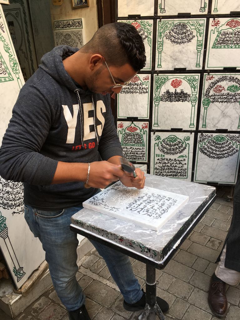 Morocco-2017 -- Fes: walking the Medina - gravestone carving