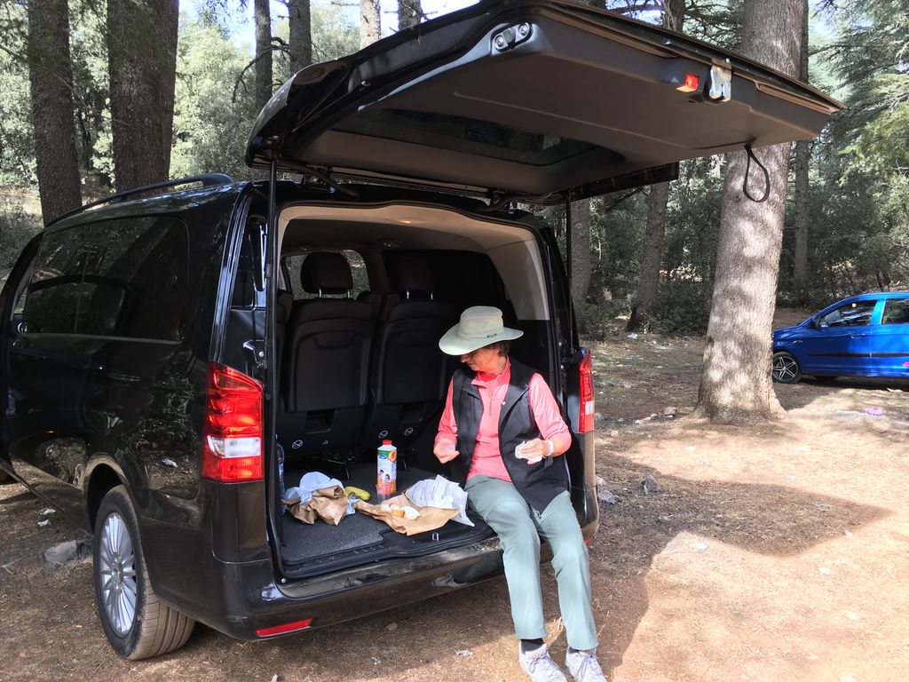 Morocco-2017 -- Parc Cedre Gouraud: picnic lunch out of the back of the van