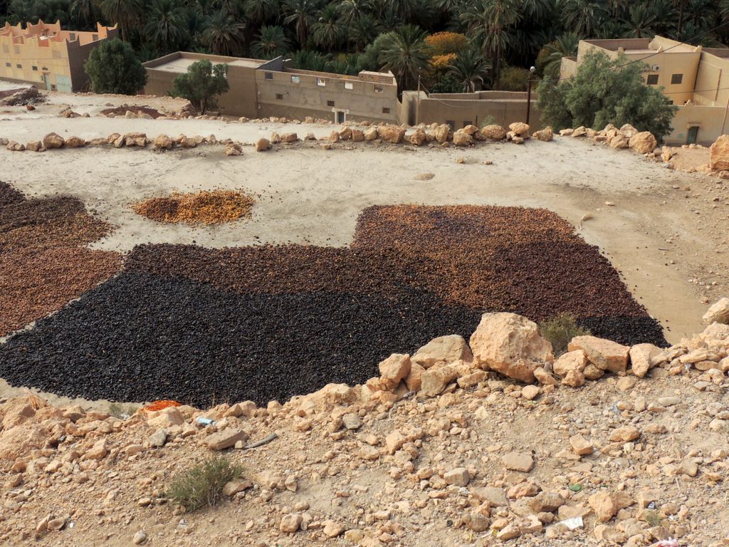 Morocco-2017 -- En route to Merzouga Desert Camp - Lamaarka oasis - dates drying