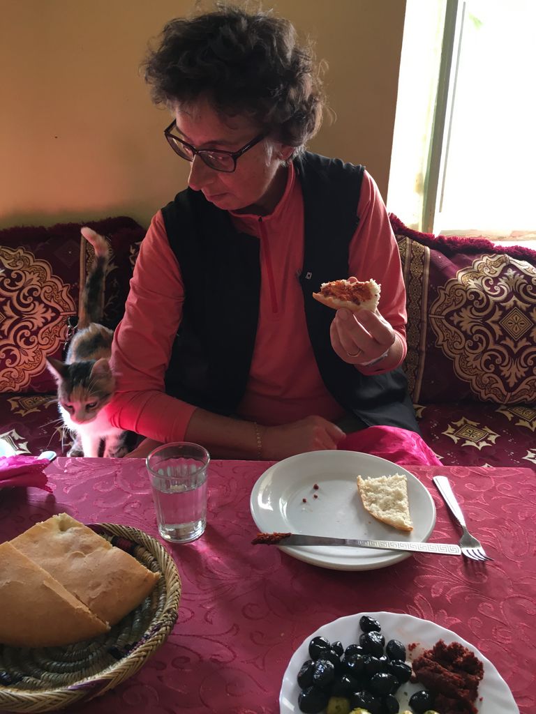 Morocco-2017 -- Tinghir oasis: Elbowing kitty away from lunch