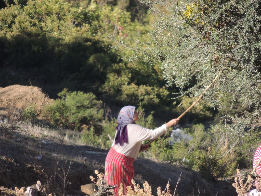 Morocco-2017 -- Chefchaoeun: Harvesting olives (shake them off the tree)