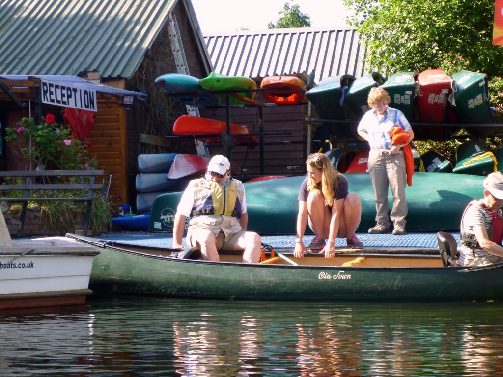 Norfolk2015 -- loading Don and Norma into a canoe, assisted by Lucy of Bank Boats