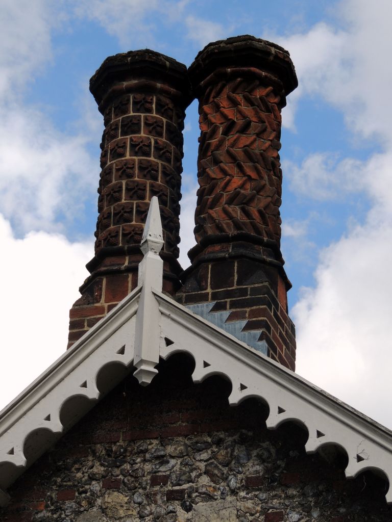 Norfolk2015 -- interesting chimneys on Norwich Cathedral grounds