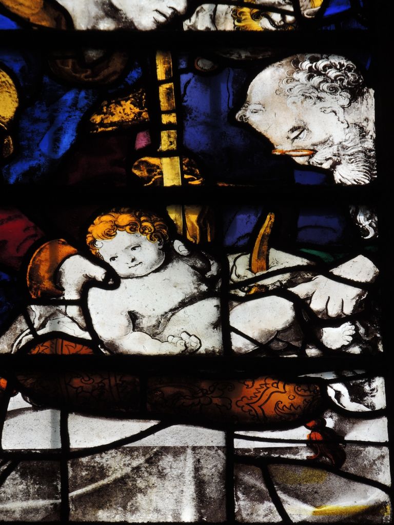 Norfolk2015 -- King's College chapel, Cambridge: more modern stained glass - wearing spectacles??