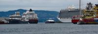 We were impressed with how clean Oslo is: no haze in the air, no (or very little) trash on the ground or in the water. And pretty quiet: cars are discouraged in the city center, with tunnels and parking under the city to handle the traffic. Mostly one sees taxis (a lot of them are Teslas), buses and trams. Oslo did not feel like that touristy a city - there are plenty of tourists, but they (we) were spread out. It's also a sunny place, given its position to the lee of mountains. They get around 280 days of sun per year. Unlike Bergen.
