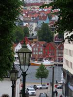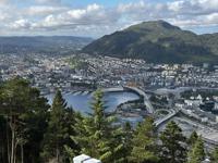We took the funicular up to Floyen, with its great views over Bergen. Petted the goats and did a hike at the top, where I was eaten alive by bugs (Deb was spared, a reversal from usual). The views from the top were remarkable. We walked back down to the hotel.