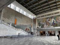 After the tour and hot dogs at a street stand, we retraced our steps back to City Hall, which is pretty plain on the outside, bordering unattractive. Our guide had said the interior was a whole different story - and it was. The grand hall had remarkable multi-storey murals and marble floor.