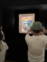 From there to the Munch museum, where we learned that he had painted 4 versions of the Scream, 3 of which were in the museum and the 4th in the National museum (also in Oslo). They were painted on paper or cardboard so the museum is very careful in their display, keeping them in a darkened room and only one on display at a time for 30' each. It wasn&apost as bad as trying to see the Mona Lisa in the Louvre, but the little room was a bit crowded. Munch also did woodcuttings and they had set up a room with a number of images cut into wooden tables and then provided crayons to make a''painting'. A bit like brass rubbing.