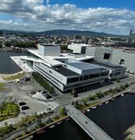 The roof of the museum gave great views of the waterfront including the Opera House next door. The Opera House has long ramps that allow you to climb from the harbour to its roof, and get further great views. One of which was the sauna boats docked - patrons can take a sauna and then jump into the fjord's chilly water.