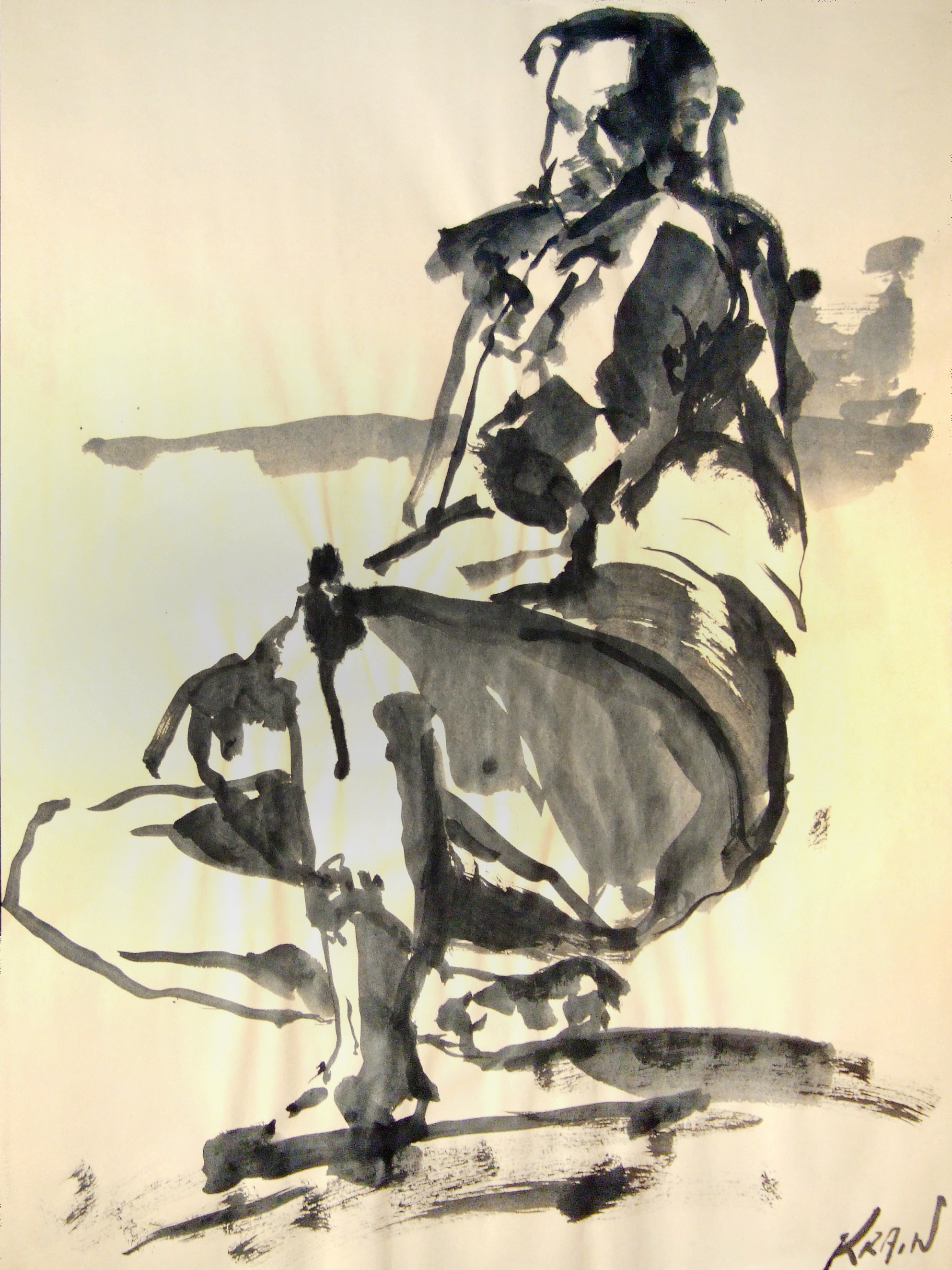 graphite, chalk pastel, india ink, watercolour