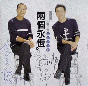 On July 24 and July 29, 1998, the author and her husband had the pleasure of meeting Jiang Yu Heng at his sister Yu Hua's restaurant in Taipei, Taiwan. The first time Yu Heng brought his 3-year-old daughter Wen Ting (who is really cute), and the second time his (also the author's) favorite song writer Li Zi Heng (left). Naturally I had their autographs on their latest album (a gift from Jiang Yu Heng).