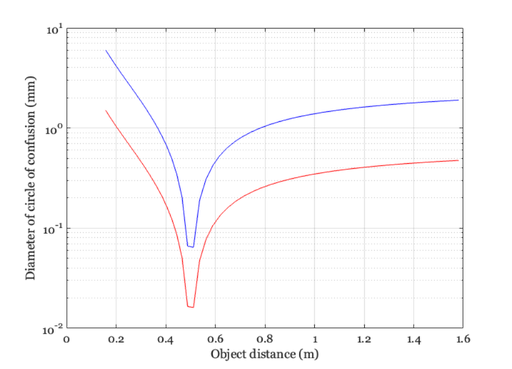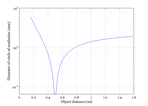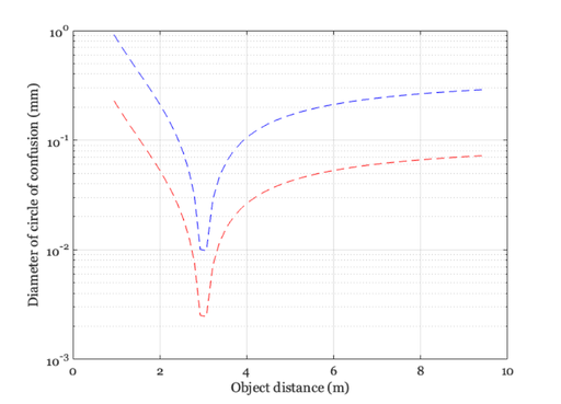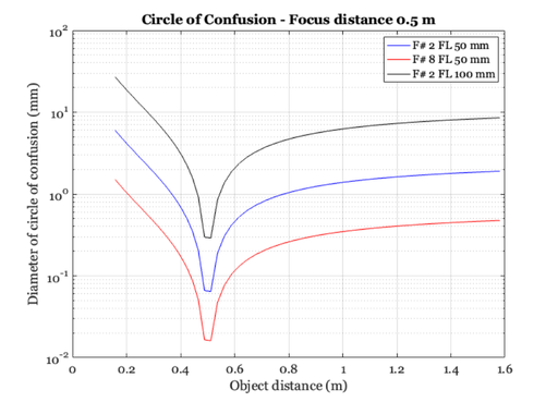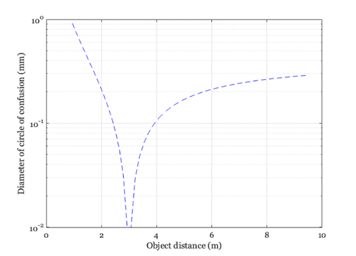 title(sprintf('Circle of Confusion - Focus distance %.1f m',oDist(oo)));