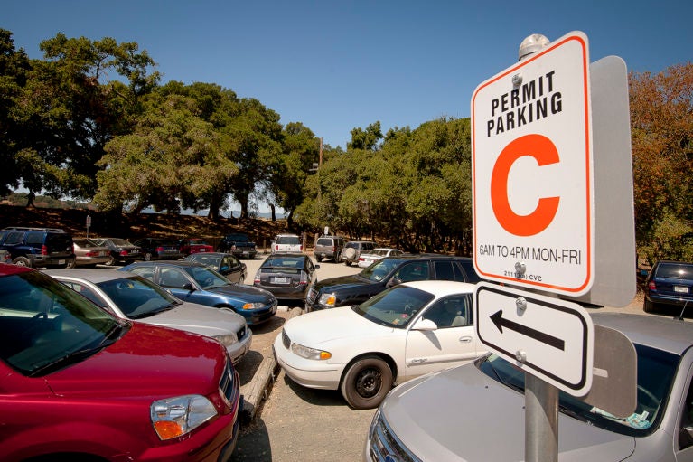 parking 08/10/2010 Parking lot near Lake Lagunita, with “C” permit sign. Credit: Linda A. Cicero / Stanford News Service